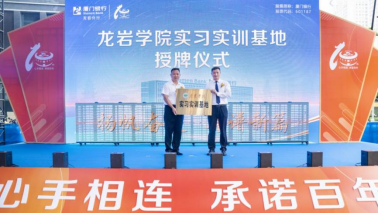 同时,现场举行龙岩学院“实习实训基地”授牌仪式。龙岩学院党委委员、副校长胡志彪为厦门银行龙岩分行授牌,厦门银行龙岩分行党委书记、负责人余勇代表分行接受授牌。