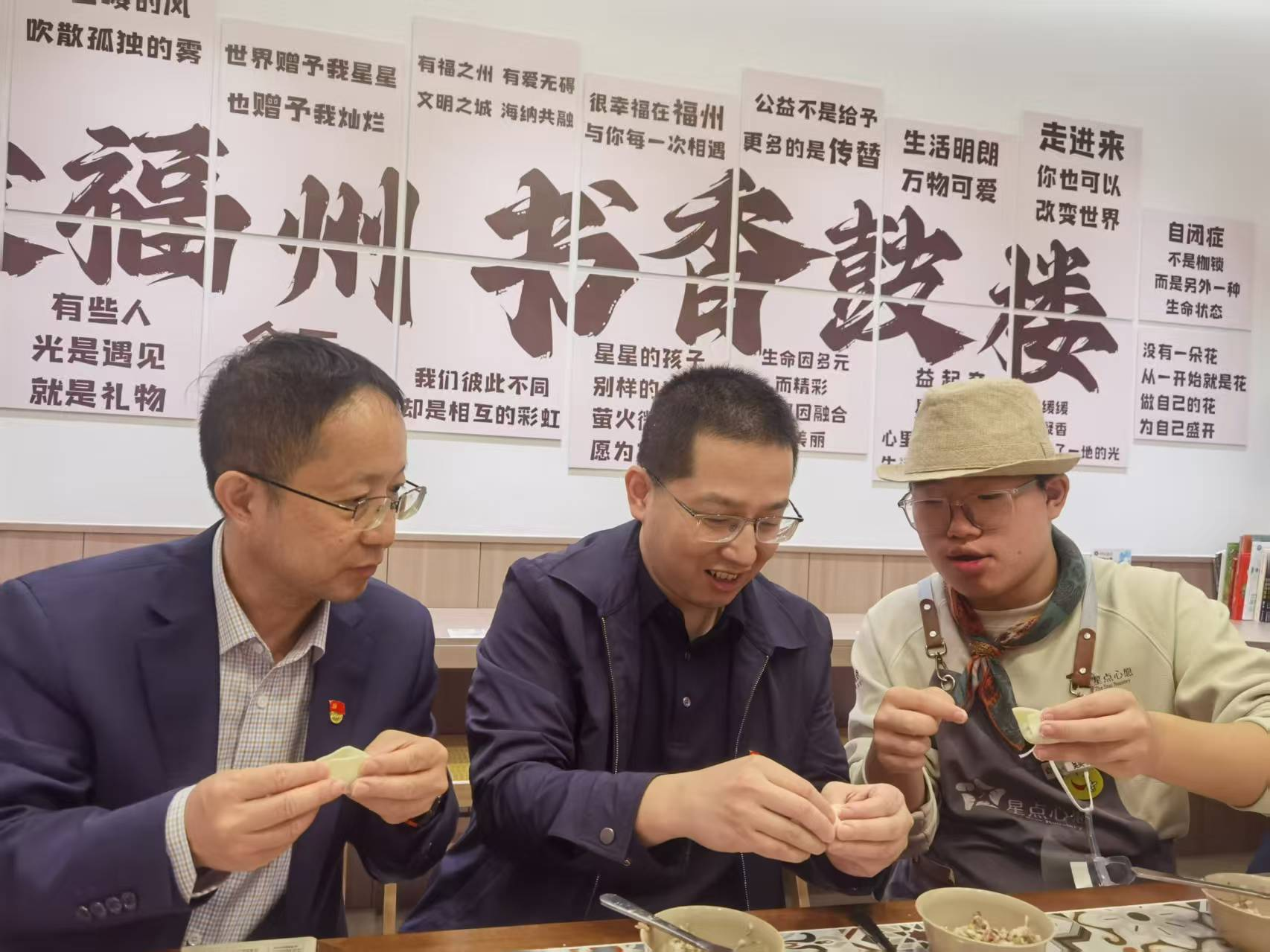 活动中,三方党支部书记共同签署党建共建协议,约定搭建常态化党建合作平台,实现资源共享与优势互补。在福建心启航助残帮扶中心副理事长魏丽清的介绍下,党员们深入了解了孤独症青年的生活状况。大家与“星青年”一起包饺子、唱歌曲,并将包好的饺子送给附近社区长者,传递孝老爱老的正能量。